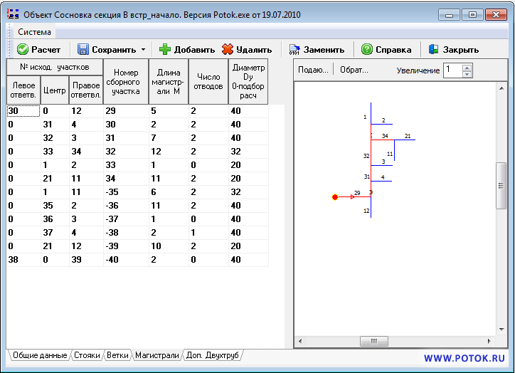 Диаметр трубопроводов может быть определён программой не менее указанного пользователем.