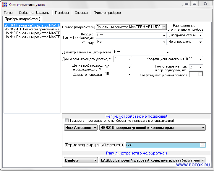 Производители запорно-регулировочной арматуры Европы вместе со своею продукцией, для успешного её продвижения, предлагают собственные программы расчёта систем и подбора арматуры. Программы адаптированы под наши нормы. Но позволяют использовать в проекте только изделия своей фирмы и только для узкого спектра назначения зданий и конструктивных особенностей систем. Как правило, это двухтрубные системы. Заказчики проектно-сметной документации при смене партнёра по поставкам оборудования зачастую ставят проектные организации перед выбором: иметь в своём арсенале индивидуальные и освоенные программные системы всех потенциальных поставщиков или освоить только одну на все возможные проектные ситуации. И этой программой является ПС «ПОТОК».